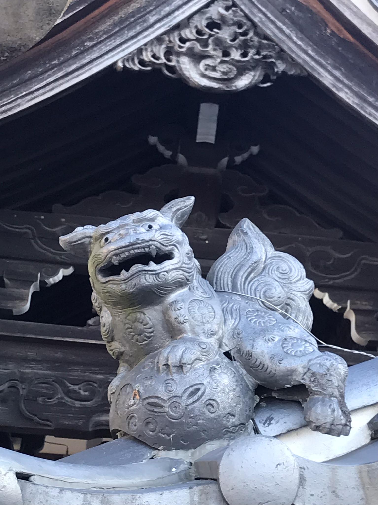 ちなみに後から調べたところ、屋根の上にいるのは狛犬とは言わず、「唐獅子の飾り瓦」と言うそうです。