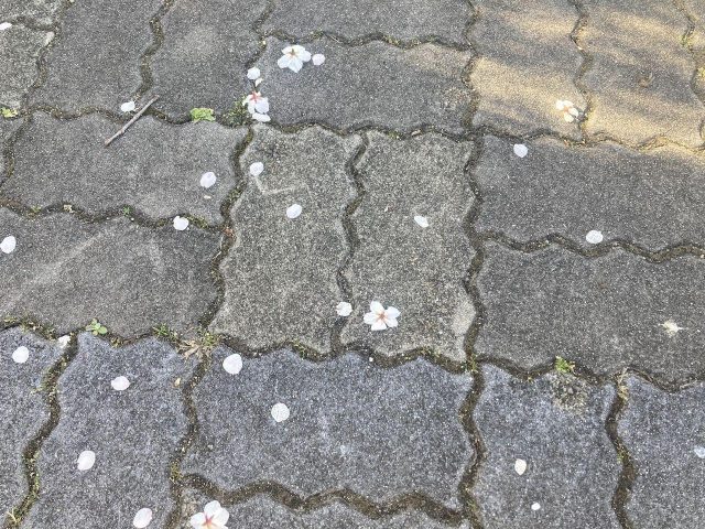 みずみずしい苔の上に可愛らしい桜色の花びら。この季節、何気ない日常の風景の中に桜が溢れている。