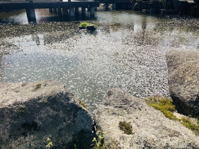 満開でも花びらが散っていないと見ることができません。また散っていても雨が降ると花びらの色が汚くなってしまったり、水面に綺麗に浮かんでいなかったり・・・。