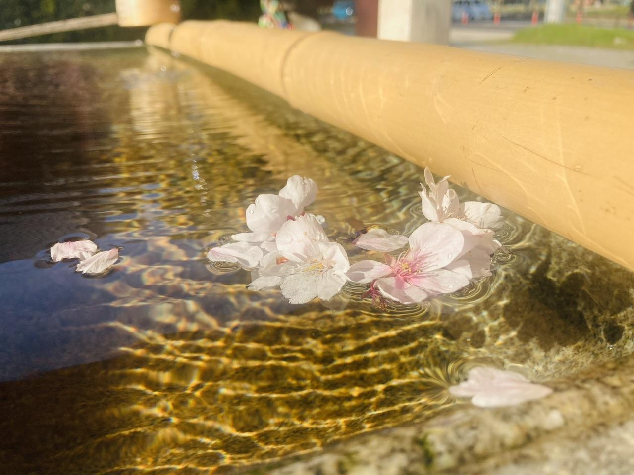 手水舎に浮かぶ桜と水紋が美しい私のお気に入りの一枚です。
