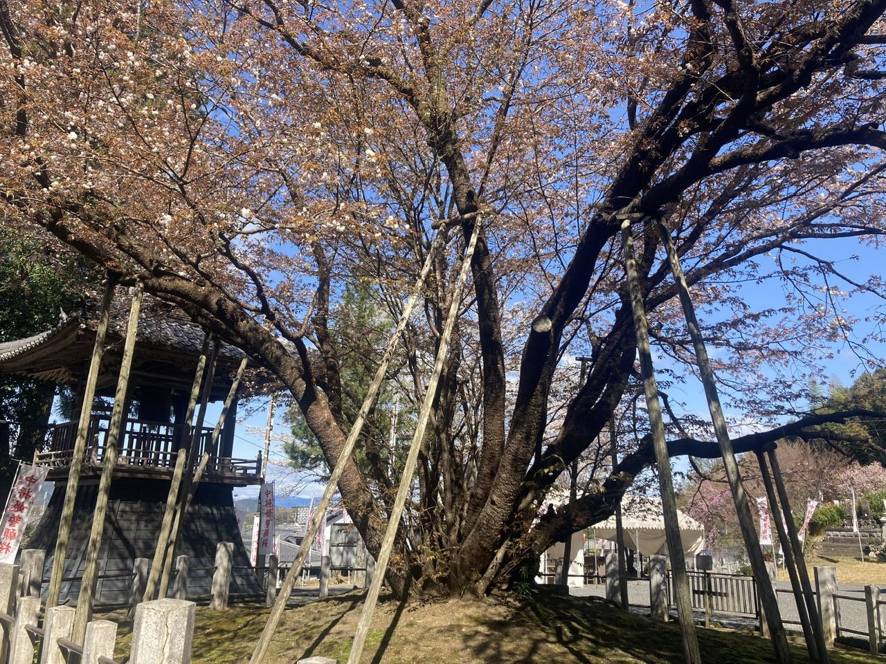 芥見地区の願成寺、中将姫誓願桜です。ヤマザクラの突然変異種で国の天然記念物に指定されています。