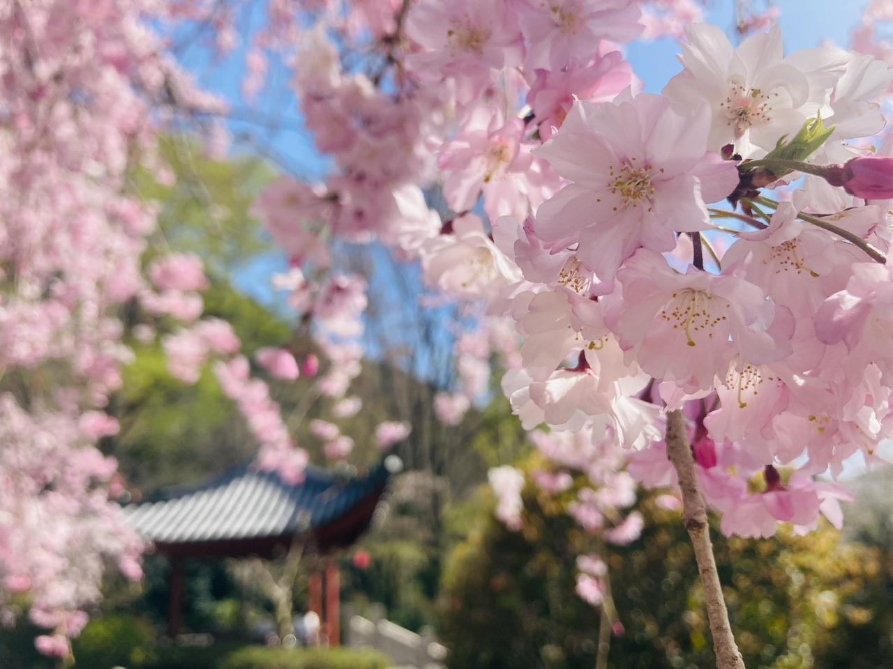 日中友好庭園では枝垂桜も美しいです。