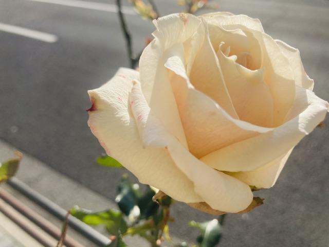 金華橋通りの「旧髙島屋」前 薔薇の花は髙島屋にちなんで植えられていたのかな?看板やシャッターから髙島屋の文字が消されても薔薇は咲き続けているんだね。かつてここに髙島屋があったんだよって言っているよう。