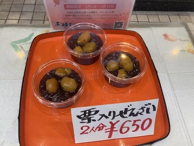栗入りぜんざいがおいしそう!と思ったこちらのお店ではロシアンケーキに心奪われた参加者さんも。栗入りぜんざいは濃姫まつりにあわせた期間限定品。通常品には栗は入っていないそう。夏場のあんみつや秋の甘栗もおすすめ。