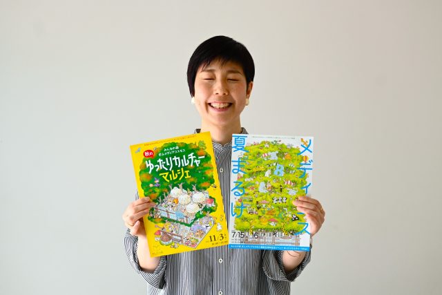 引越したばかりの頃は知り合いも全然いなかったのですが、ご近所にまちづくり団体があり、ある時お声掛けいただけて、そこからデザインのお仕事を再開しました。そのご縁で、善光寺さんともお仕事をするようになり、「ミライの参道まるけ」というイベントのチラシデザインを任せていただくようになりました。メディコスさんとのお仕事もそのチラシがきっかけですね。
