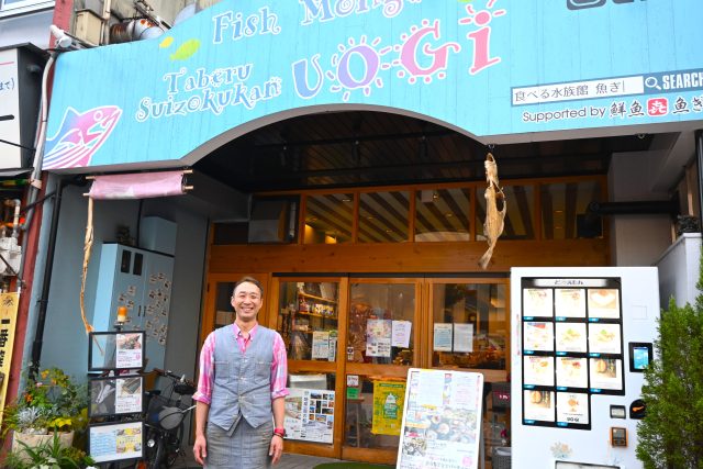 「食べる水族館 魚ぎ」というネーミングは、お客さんがふと口にした言葉なんです。まだ魚屋の頃、たくさんの種類の魚がお店にズラーっと並んでいるのを見て、「食べる水族館やね~!」って言われたんです。「それめっちゃよくないですか?その名前いただいてもいいですか?」ってなって、それからイベントなどで使わせてもらうようになりました。その後、店舗の看板を新調するタイミングでお店の名前を「食べる水族館 魚ぎ」にしました。イートインに改装したのはその後です。せっかく「食べる水族館」という名前があるんだから、イートインサービスを始めてもいいのかなって思ったんです。