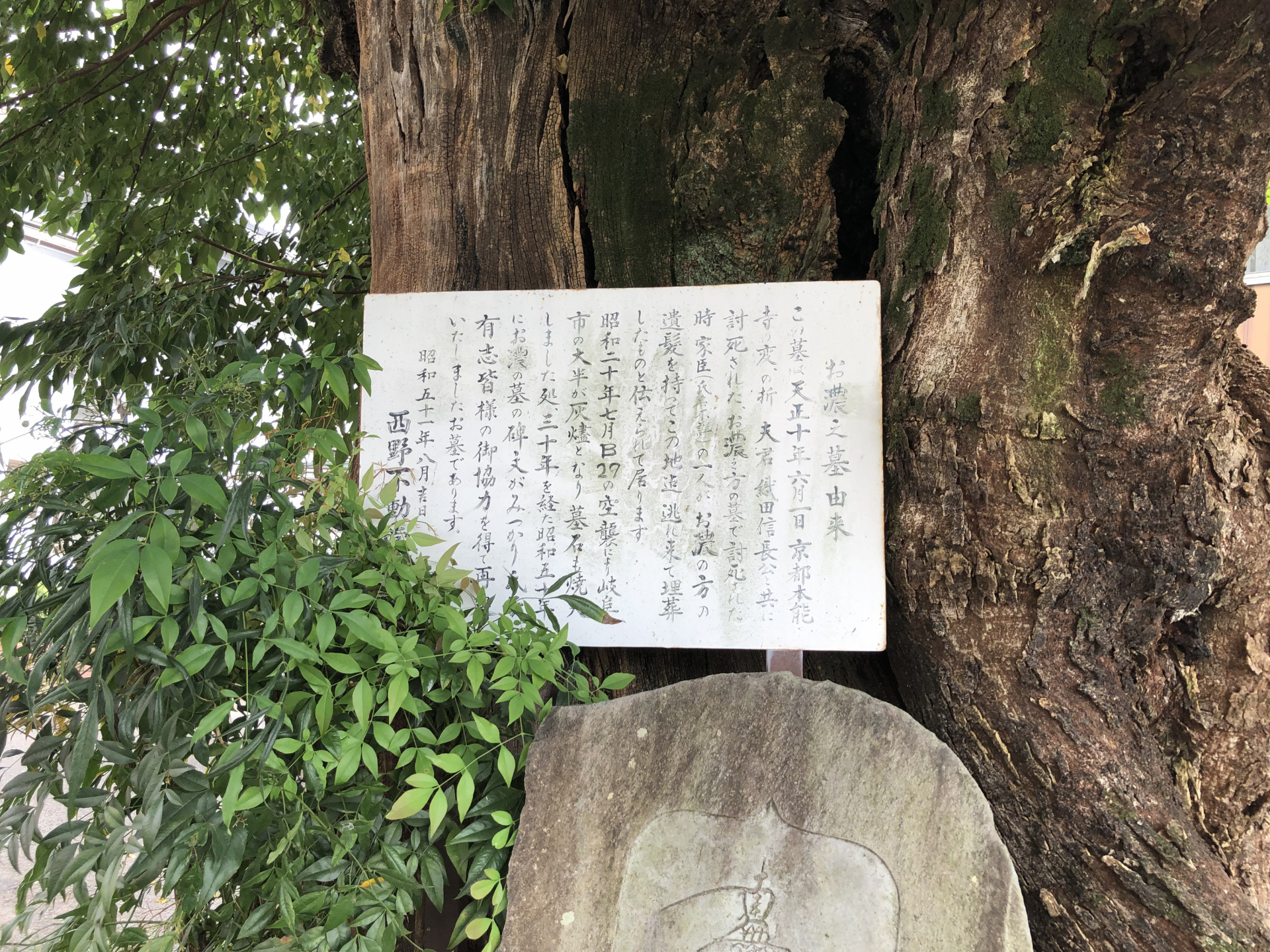 信長と道三 濃姫遺髪塚 濃姫は、斎藤道三と可児明智城主(現在の可児市)明智三継の娘で才色兼備と言われた小見の方(おみのかた・道三の正室)との間に生まれた。濃姫が信長と結婚後、どのような生活を送ったかは、資料が少ないためほとんどわかっていないが、本能寺の変で信長と共に亡くなった濃姫の遺髪が、逃げ延びた家臣によってここに埋葬されたと伝えられている。 基本情報Spot Information スポット名 濃姫遺髪塚 スポット名よみ のうひめいはつづか 住所 岐阜市不動町 エリア メディコス周辺 テーマ 信長と道三 一覧へ戻る