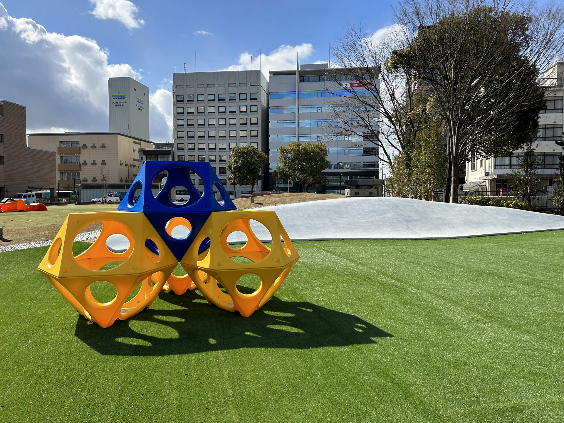 柳ケ瀬の南に位置する中心市街地内の公園。令和5年(2023)3月に、市のセントラルパークとしてリニューアルオープン。約1ヘクタールの敷地内には緩やかな傾斜をつけた芝生広場やステージ、幅約20メートルの滑り台などが整備され、住民の憩いの場・レクリエーションの場として親しまれている。