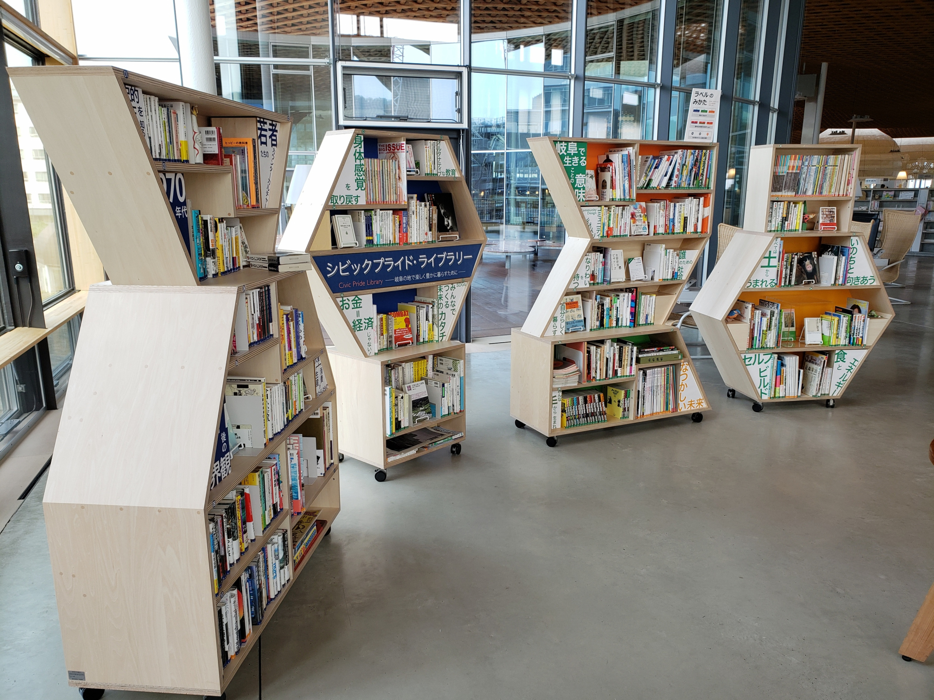 ぎふメディアコスモス2階・市立中央図書館の南東スペースにある特集本棚。岐阜の地で楽しく豊かに生きていくための「生きる武器」となり「暮らしを耕す」タネとなる本を横断的に収集。この本棚を通じて「自分らしい暮らし」の実践から地域社会がもっと面白く豊かになるアイディアを考える対話やワークショップの開催、地域の生活文化・記憶が集まった本や資料の展示など、岐阜のシビックプライドにフォーカスした空間をつくっている。