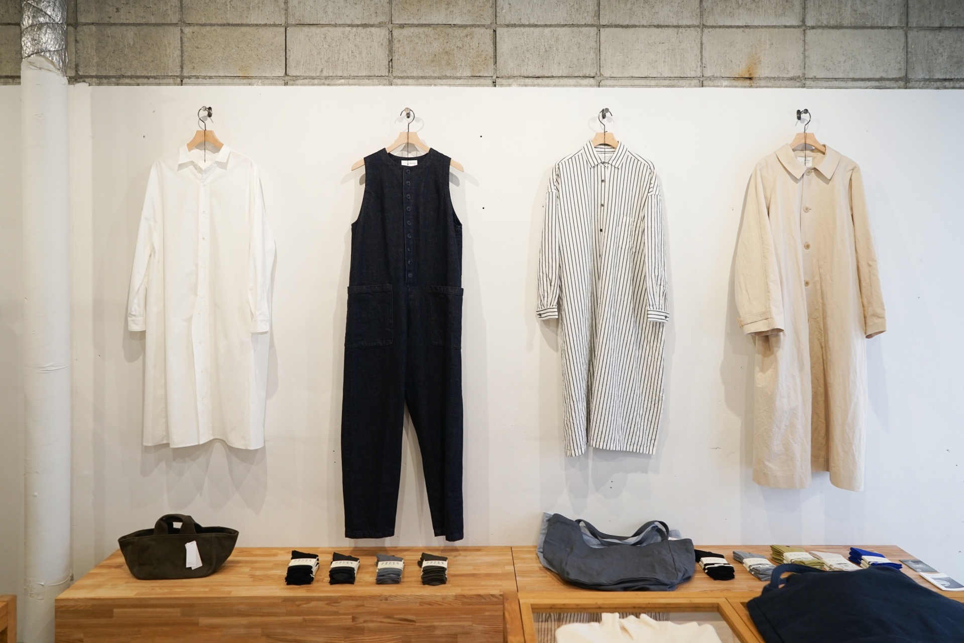 繊維のまちとして知られる岐阜・一宮をはじめとする日本国内で縫製する、ユニセックスのオリジナルウエアブランド。素材の持ち味を生かしたシンプルなデザイン、着心地の良さを追求した「毎日着たくなる日常着」です。素材の選定から最後の仕上げまで、デザイナーがそれぞれの工程の職人のもとへ直接出向き、何度も微調整を繰り返しながら仕立て上げています。オリジナルウエアに合う小物や靴もセレクト。