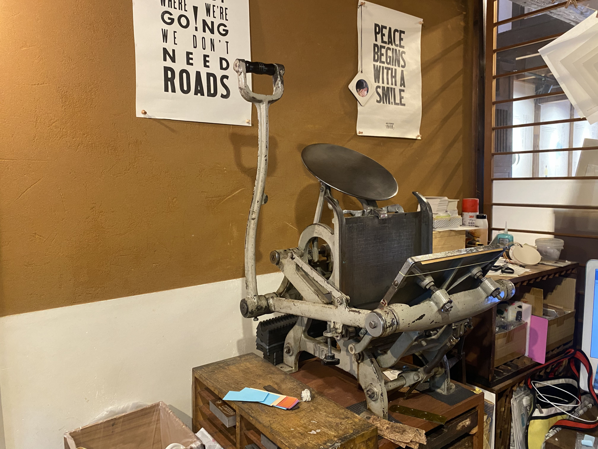 ずらりと並ぶ活字に、手動式の活版印刷機のガシャン、ガシャンという音が響く印刷室。活字を拾って版を組んで刷る昔ながらの活版印刷で、味わい深い印刷物を制作しています。はじめて活版印刷に触れる人でも体験できる「活版ワークショップ」を随時開催(予約制)。自分でデザインを決めて必要な活字を拾い、美濃手漉き和紙に刷って名刺やカードをつくる体験ができます(詳細はWebやSNSをチェック)。活版印刷物の注文も受付中。
