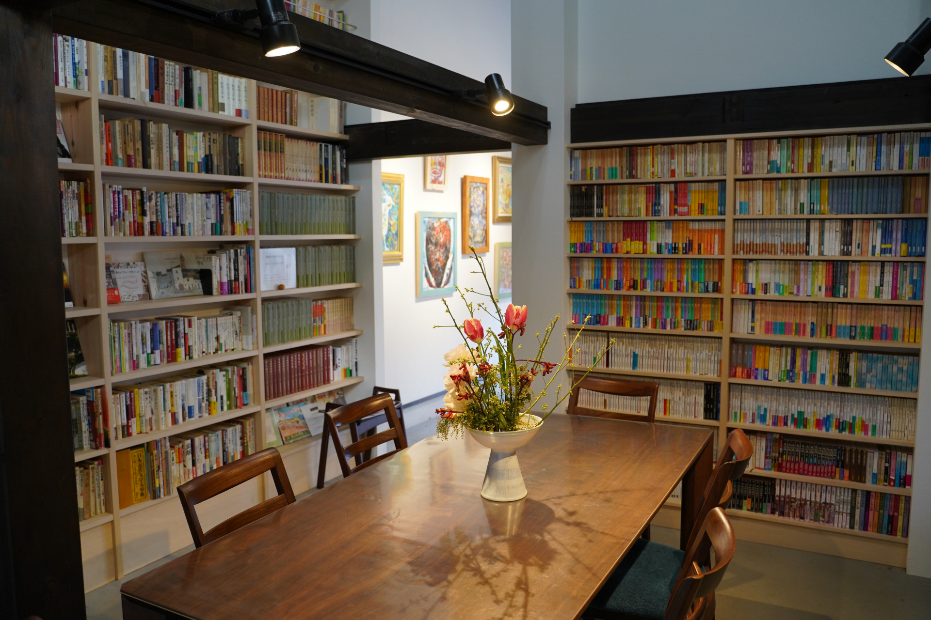 長年、東京で編集者を務めた店主が「アートする人を応援したい」と、令和4(2022)年にオープンしたギャラリー。展示作品は絵画、陶芸、写真などジャンルを問わず、2週間から1カ月ごとに入れ替わる。長い会期を設けているのは一人一人の作品をじっくり味わってほしいという想いから。入場は無料。展示スペースに隣接する書斎では、壁面を埋め尽くす本に囲まれ、コーヒーを飲んで一息つくこともできる。