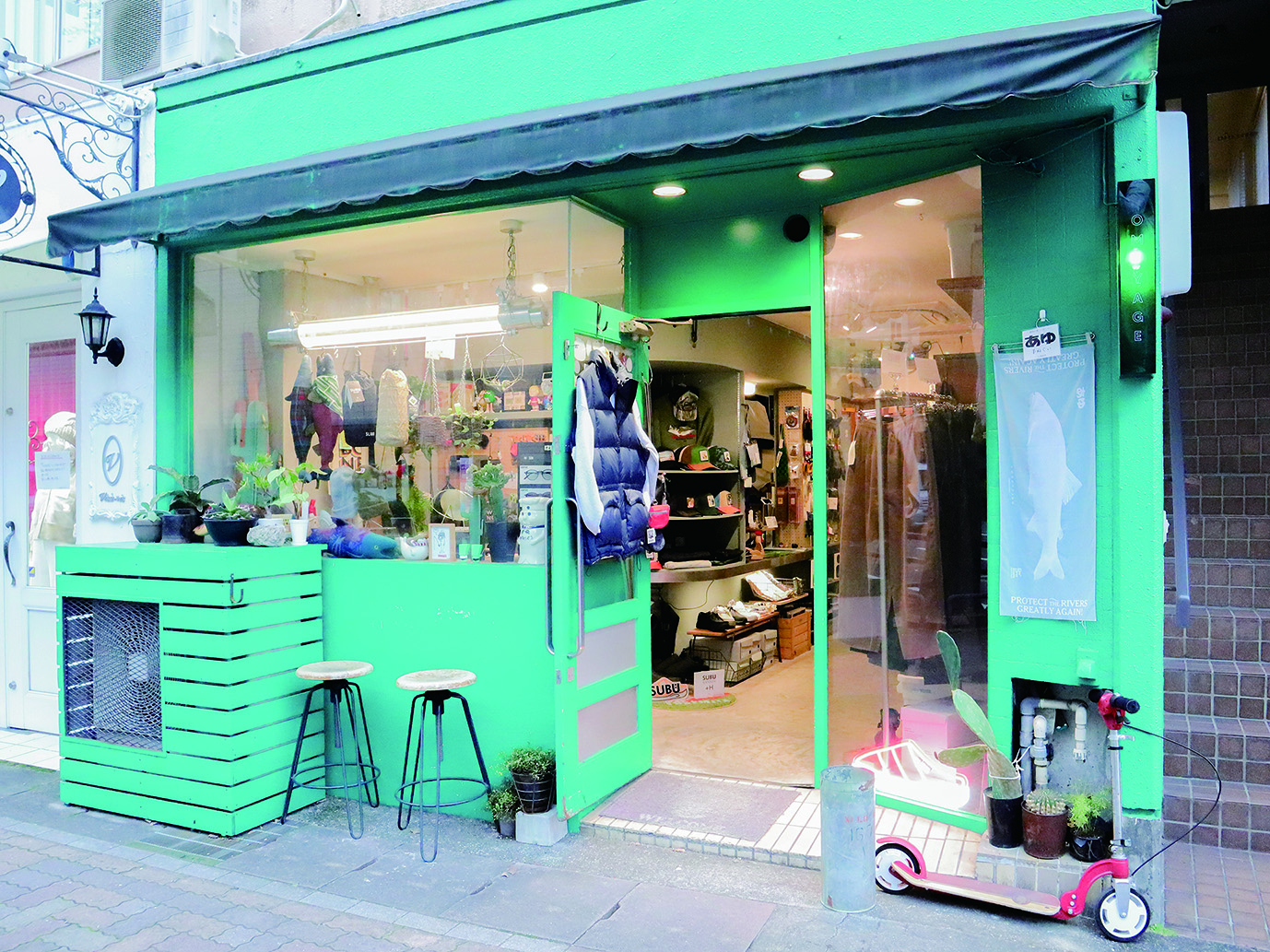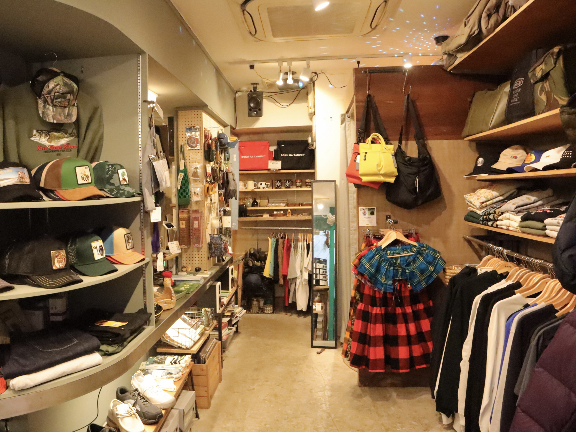 岐阜とアメリカのカルチャーが感じられる「お土産」をコンセプトにしたアイテムや、お客さんとの出会いから生まれた雑貨、独自のセレクト商品までがずらりと並び、眺めるだけで心がワクワクする空間が広がっています。「気づいたらお客さん同士も繋がりができている現象がおもしろくて。もっとまちにオープンなお店にしていきたい」と店主の木下さん。「好きなものと暮らしたい」を叶えてくれる、心惹かれる出会いがある場所です。