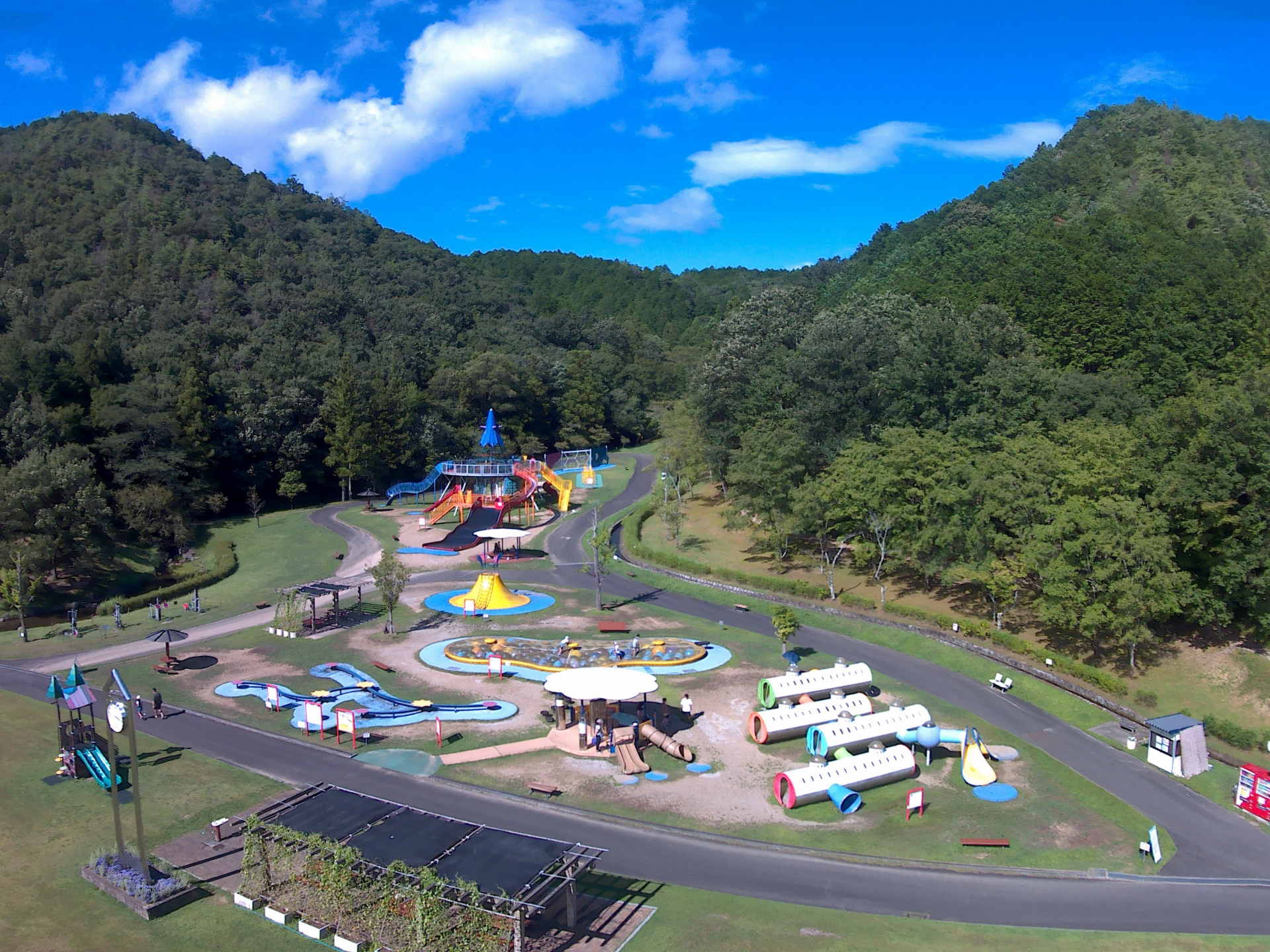 岐阜市北東部に位置する総合公園。豊富な自然に囲まれた環境の中で、スポーツ、レジャー、自然学習とさまざまな体験ができる。園内の「こどもゾーン」では、「ボブスレー」「スーパーモービル」「ジェロニモ砦」といった遊具のほか、東海三県で最長となる総延長180m超の「長大ローラーすべり台」があり、幅広い年齢層で楽しむことができる。