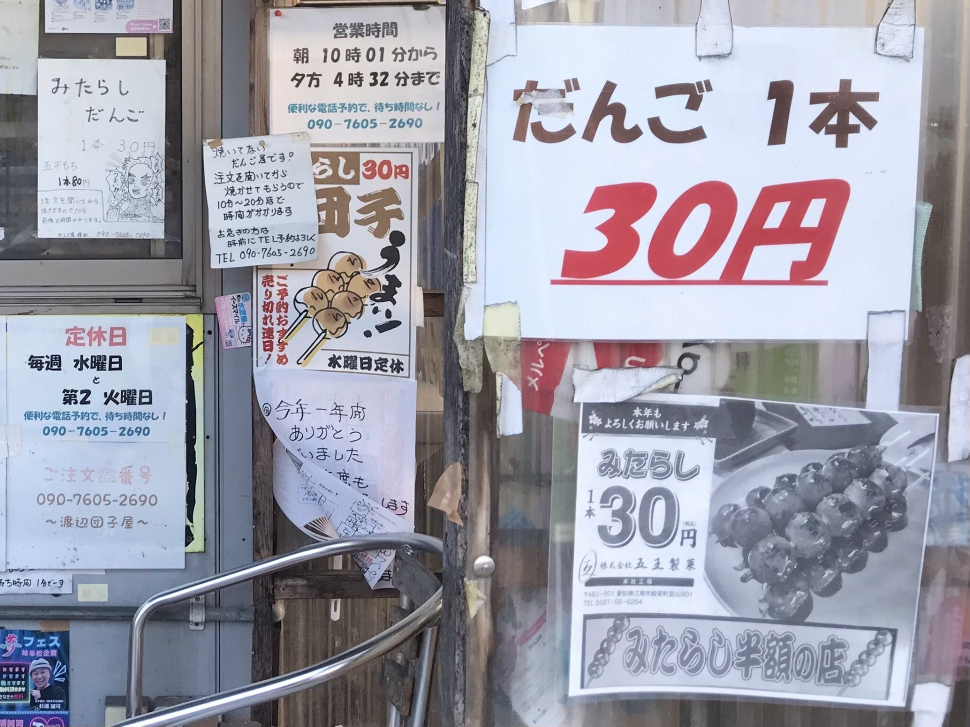 みたらし団子が1本30円!のびっくり価格の団子屋。常連が多く1週間に約4000本の団子が売れるという。店主の渡辺さんのおしゃべりが面白い。郵便局員時代の武勇伝を聞きながら、団子の焼き上がりを待つのも楽しい時間。アツアツの団子は焼き目が香ばしく、モチモチでおいしい。心もお腹も元気になるお店だ。焼き上がりに10分前後かかるので、急ぎの場合は電話予約がおすすめ。五平餅は1本60円とこれまた安い!