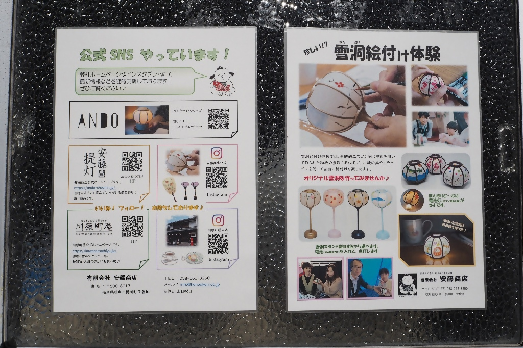 岐阜城下町の散策途中に立ち寄れる、創業100年を超える老舗の提灯店。岐阜で唯一、雪洞(ぼんぼり)の製造技術を受け継ぎ、4代目が中心となって創作提灯にも挑戦しています。店頭で購入できる自分で絵を描く「絵付け雪洞」が人気。「今は仕事がすごく楽しい!」と語る4代目の情熱が、新しい灯りを生み出します。水うちわやポストカードも並び、お土産にも最適。老舗の技と灯りの文化を、旅の思い出として持ち帰りませんか?